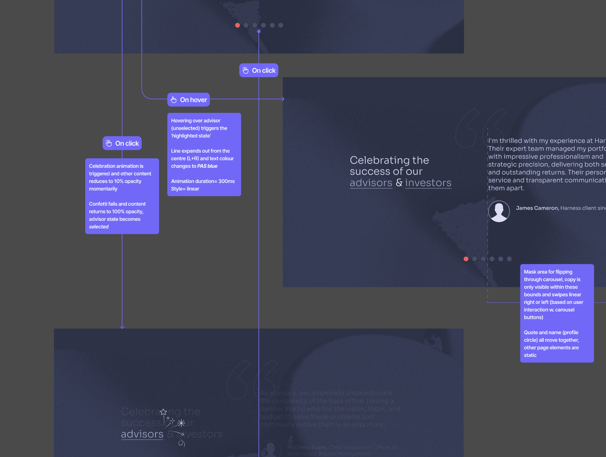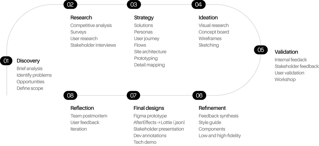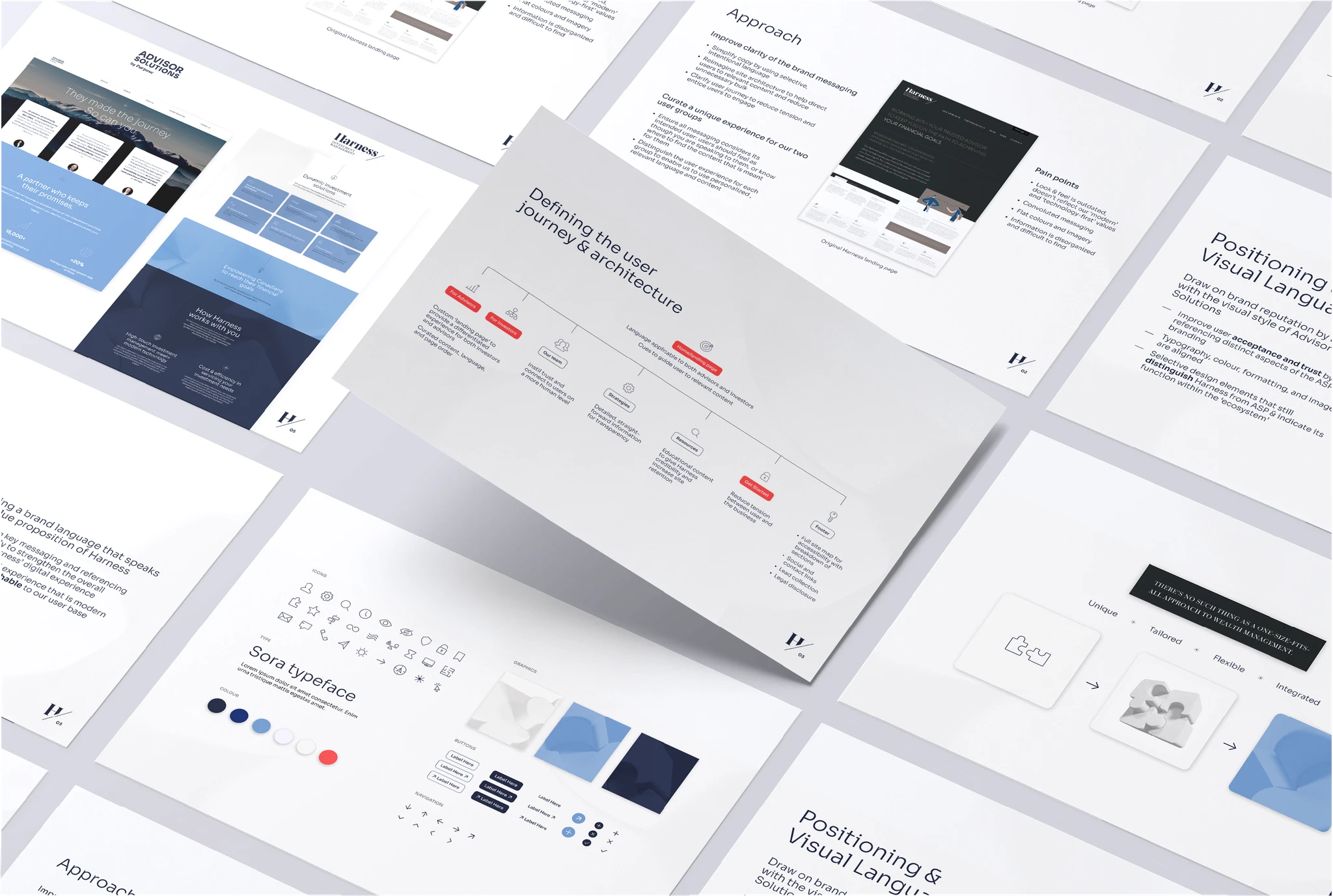 Work with stakeholders to identify the brand story. In alignment with the user journeys, improve message clarity and overall communication of ideas