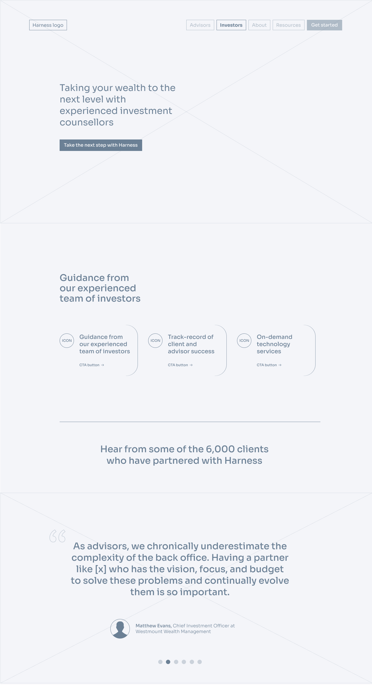 Feedback at this stage is key to an efficient design workflow, and I keep a standard kit to develop wireframes in a style that's clean, but visually indicates that these designs are just prototypes. If the wireframes are too polished or detailed, stakeholders will often confuse them for final designs or fixate on details that will be resolved in the high-fidelity stage.